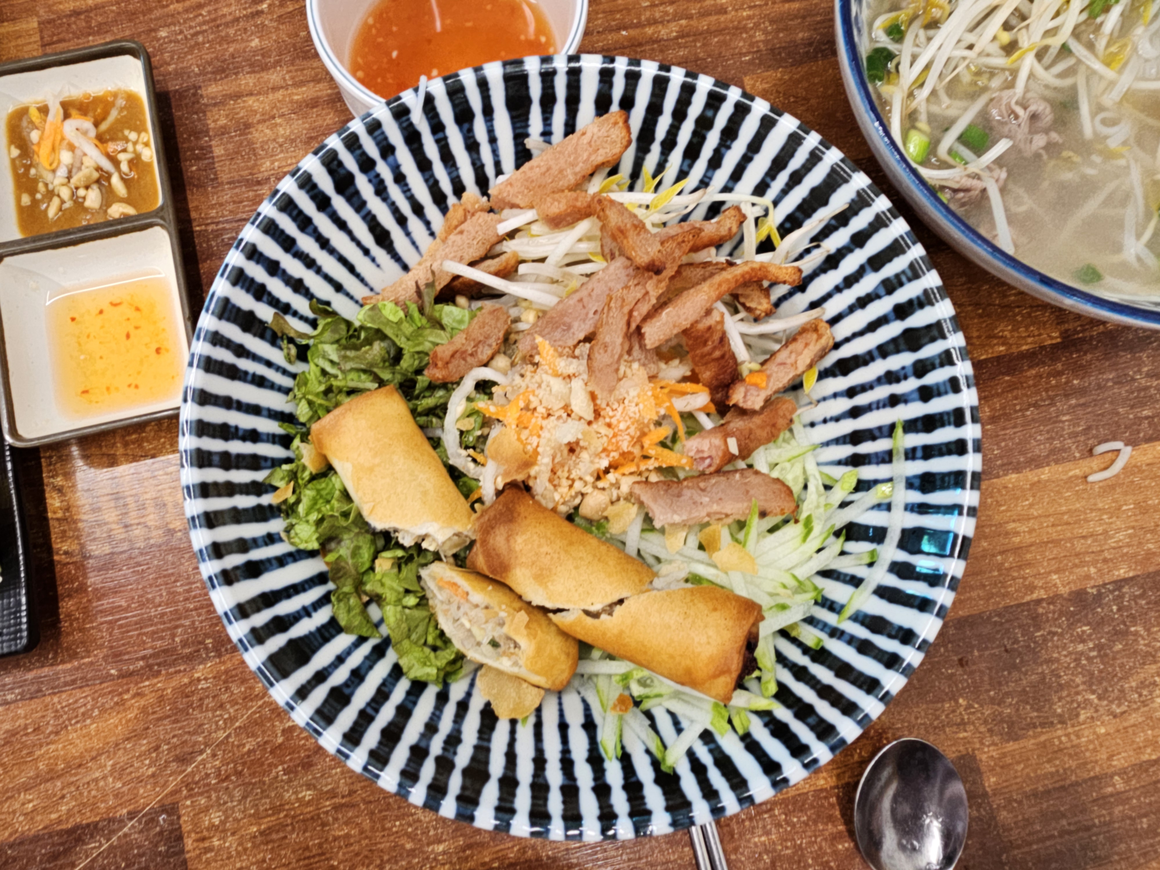 식당에 도착해 보니 첫인상은 다소 허름한 분위기였습니다. 토요일 점심이라 그런지 대기하는 분들이 있더라고요. “아, 잘 찾아왔구나” 싶었습니다. 메뉴판을 보며 설레는 마음으로 주문을 하려는데… 아쉽게도 제가 먹고 싶던 넴느엉(베트남식 고기꼬치구이)은 없었습니다. 조금 실망했지만 우리 부부는 쇠고기 쌀국수, 비빔국수 돼지고기구이, 월남쌈을 주문했습니다.