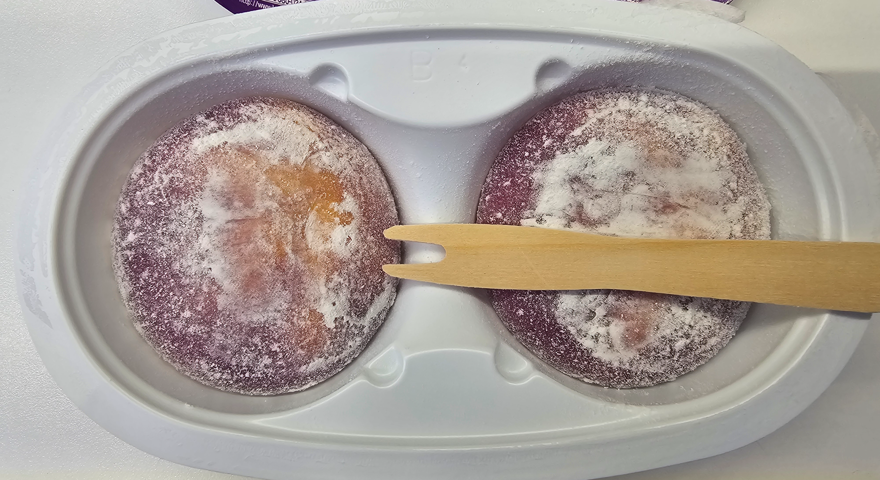 박스를 열고 한 봉지를 뜯어보니, 겉은 보랏빛이 돌고 안쪽은 노란색! 컨셉 확실합니다! 그런데 약간 쓴맛이 도는 것 같은 느낌이 들었습니다. 아내도 먹어보더니 마찬가지로 아주 미묘하게 쓴맛이 느껴진다고 하더라고요.