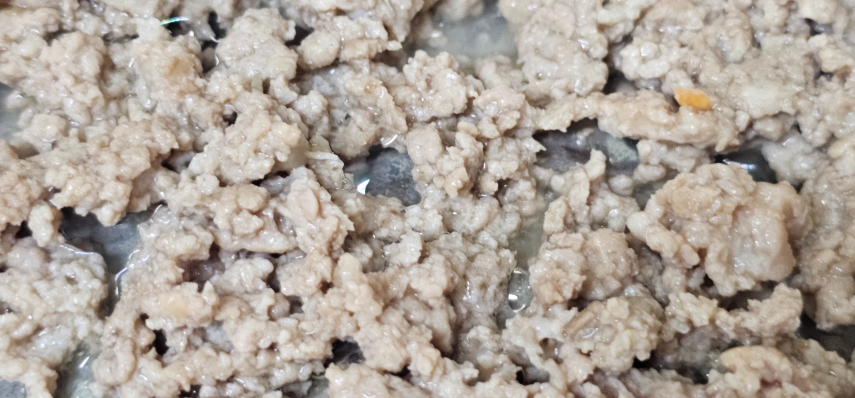 팬에 다진 고기를 넣고 볶아보니, 확실히 완벽하게 다져졌습니다. 간단히 양념 넣고 밥과 함께 볶아 주니… 음, 닌자 아주 마음에 드네요.