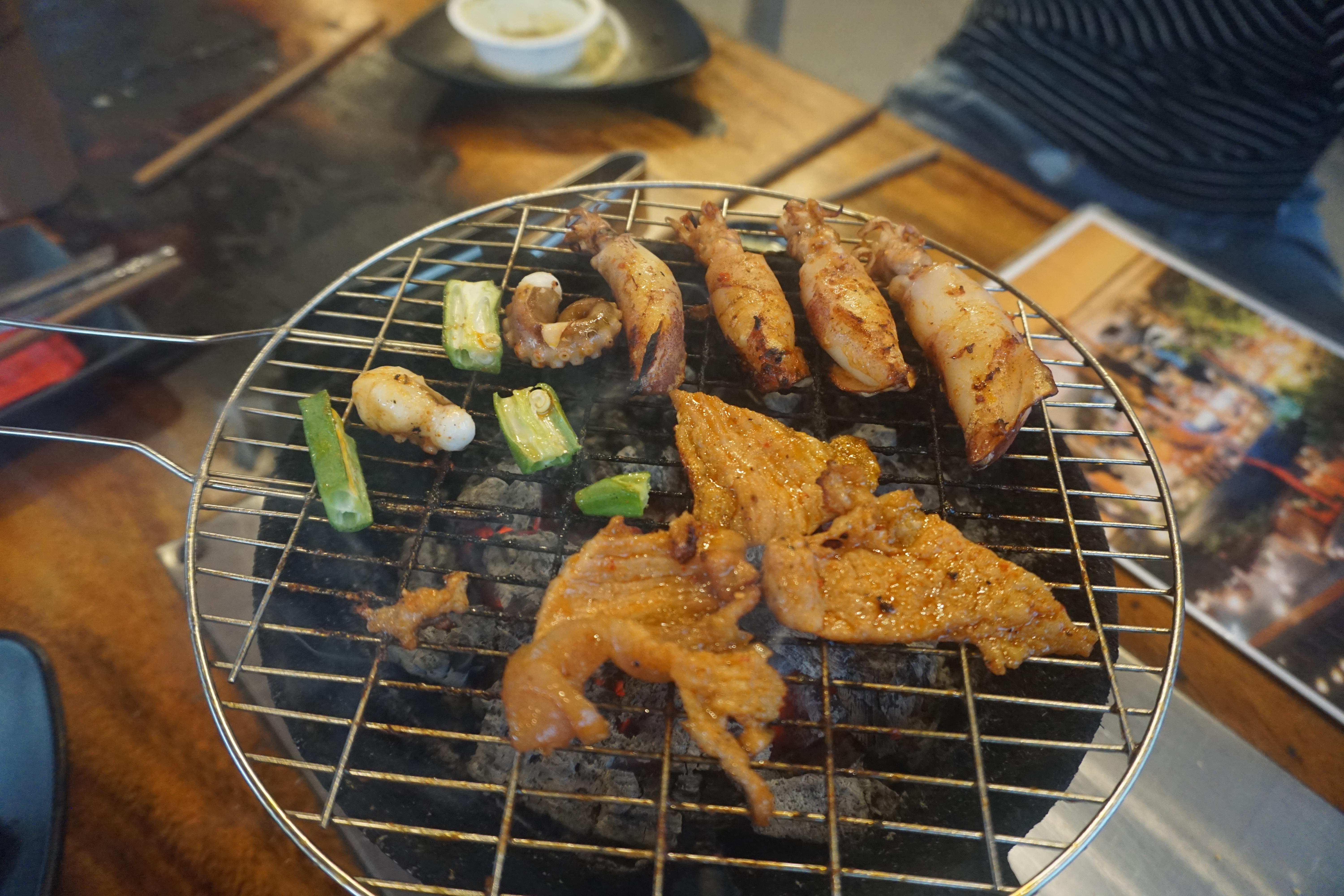 총알오징어인지 큰 꼴뚜기인지는 중요하지 않으니, 일단 빨리 화로에! 문어도! 돼지도!