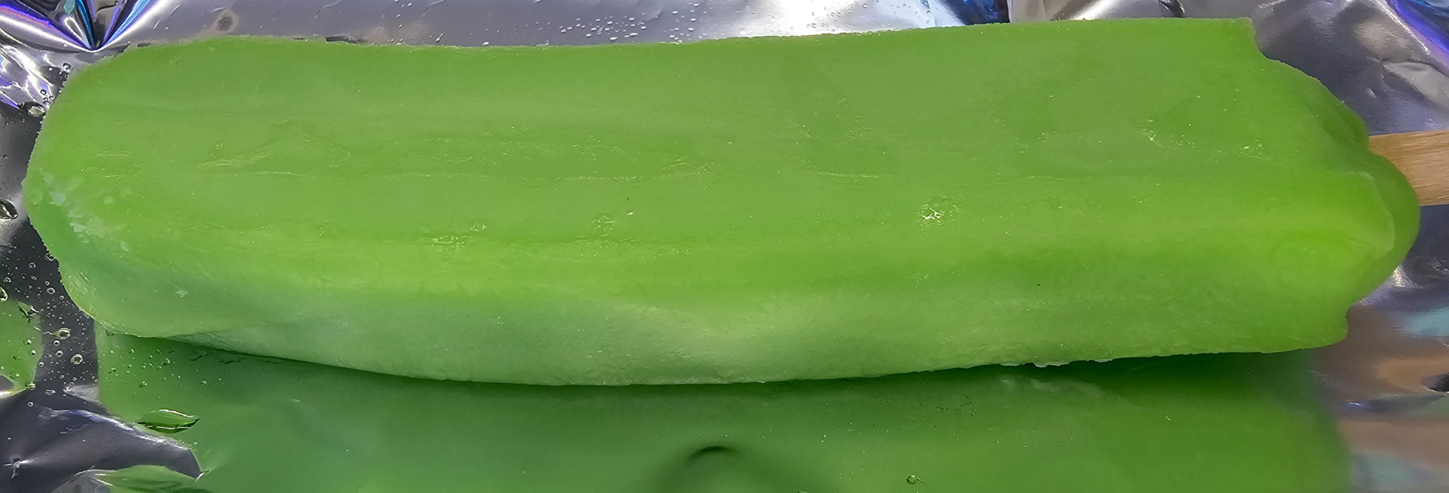 살짝 휘어보니 다른 아이스크림과는 달리 잘 휘어집니다. 신기해서 몇 번 더 구부려봤는데, 이거 은근히 갖고 노는 재미도 있더라고요. 깨물어도 딱딱하지 않고 이빨이 쓱 들어갑니다. 맛은 익숙한 맛! 바로 산뜻한 청사과맛이에요. 과하지 않은 상큼함이 입안을 깔끔하게 씻어주는 느낌이네요.