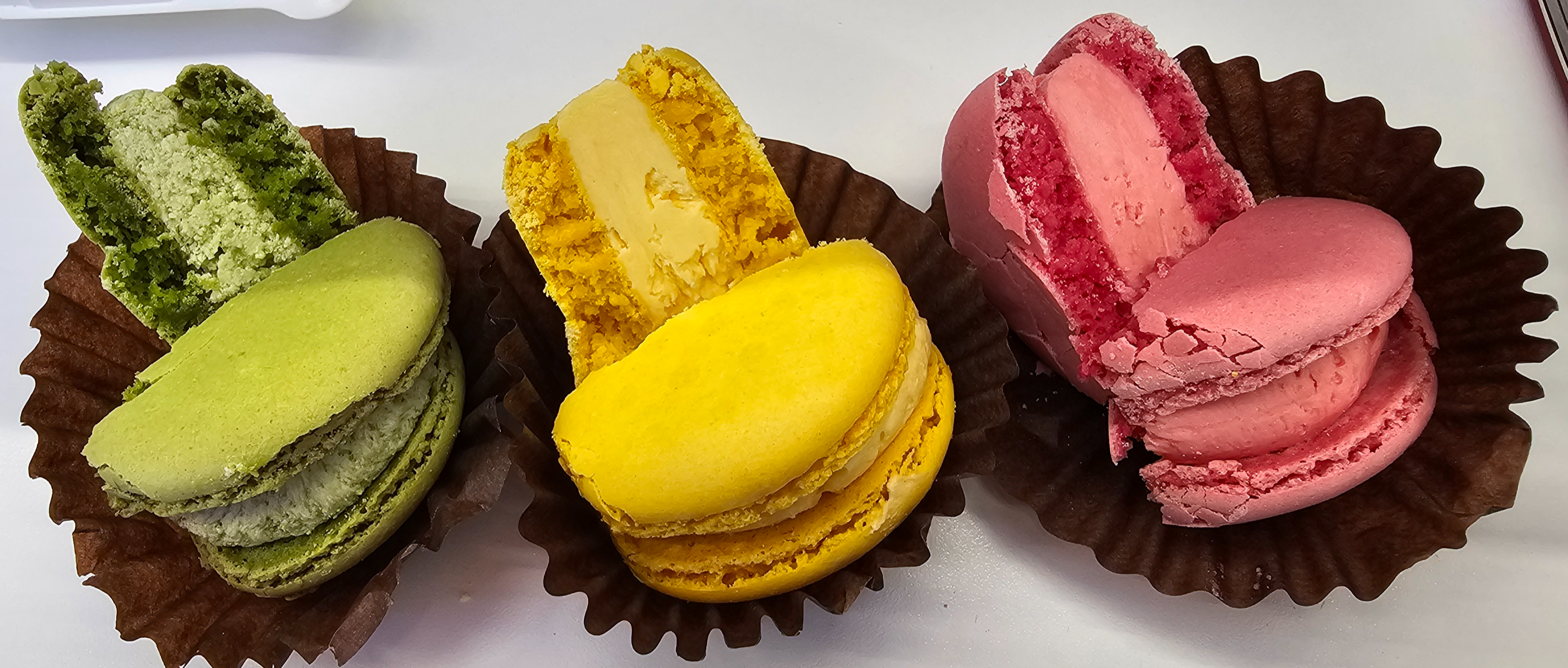 부스러지네요. 마카롱은 깔끔하게 잘릴수록 좋은 마카롱이라던데 여태껏 먹어본 마카롱 중에 완벽하게 잘리는 마카롱은 거의 없었던 것 같아요.