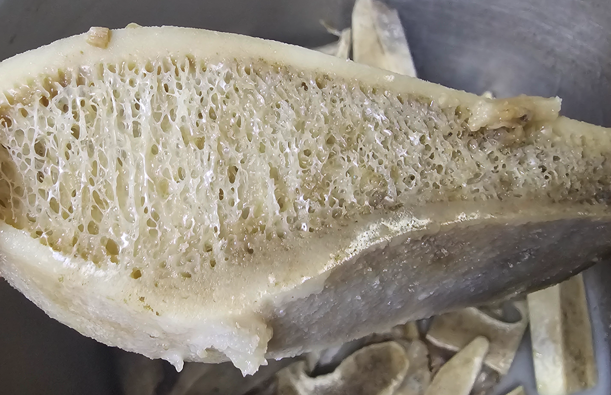 국물이 절반 이하로 줄고, 뼈에는 구멍이 송송 뚫리며 우윳빛깔이 제대로 나왔습니다.