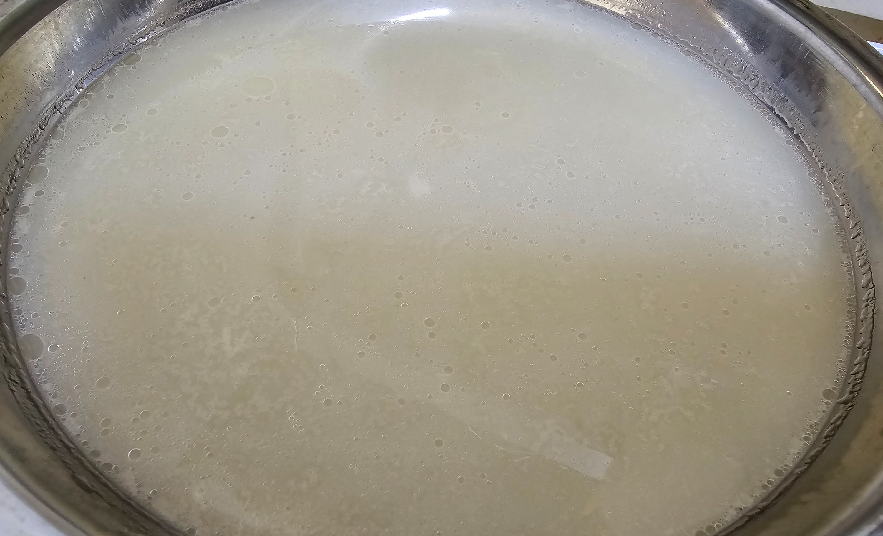 거품이 다 나왔다 싶을 정도가 되면 이 물은 전부 버려줍니다.