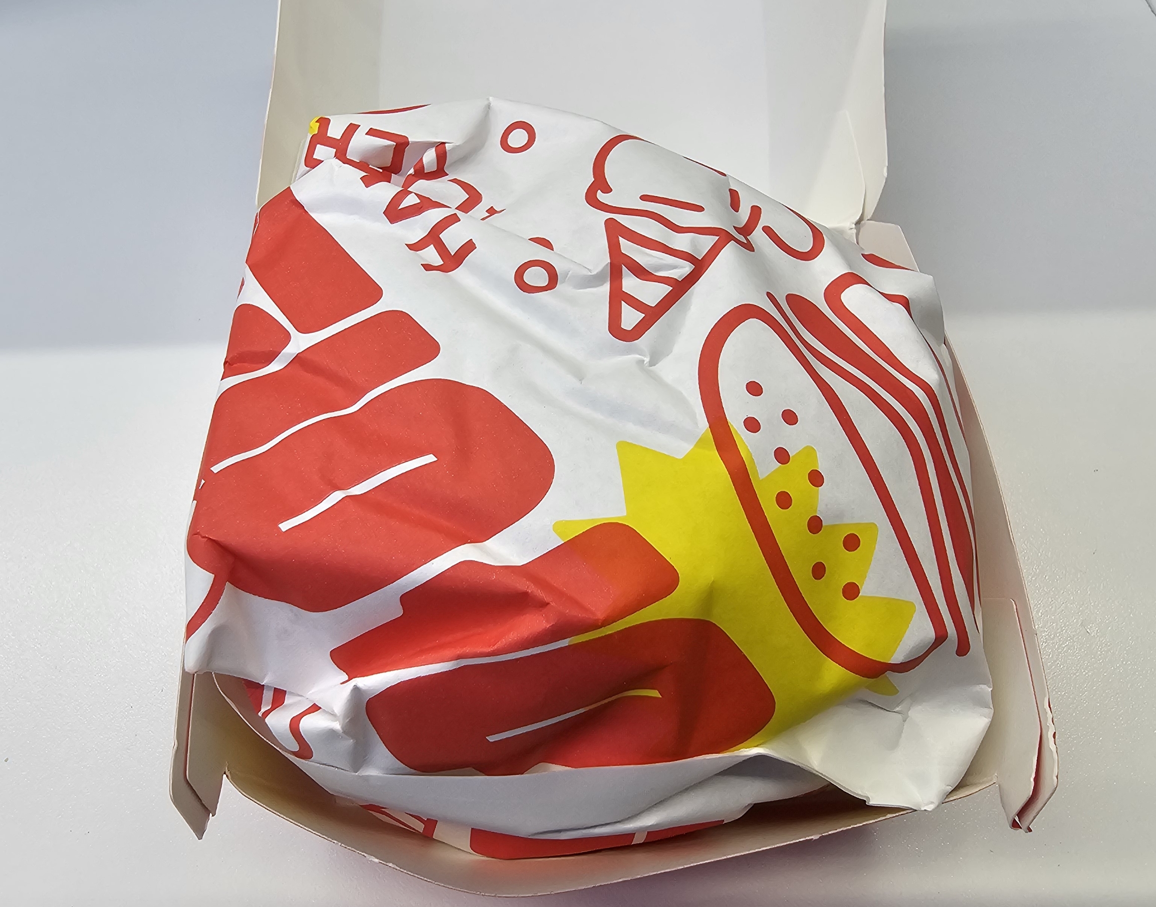 비닐포장을 벗기고 박스만 보니 실제 햄버거 박스처럼 생겨 있어서 모르는 사람에게 주면 누구든 의심 없이 햄버거라고 믿을 것 같았습니다.