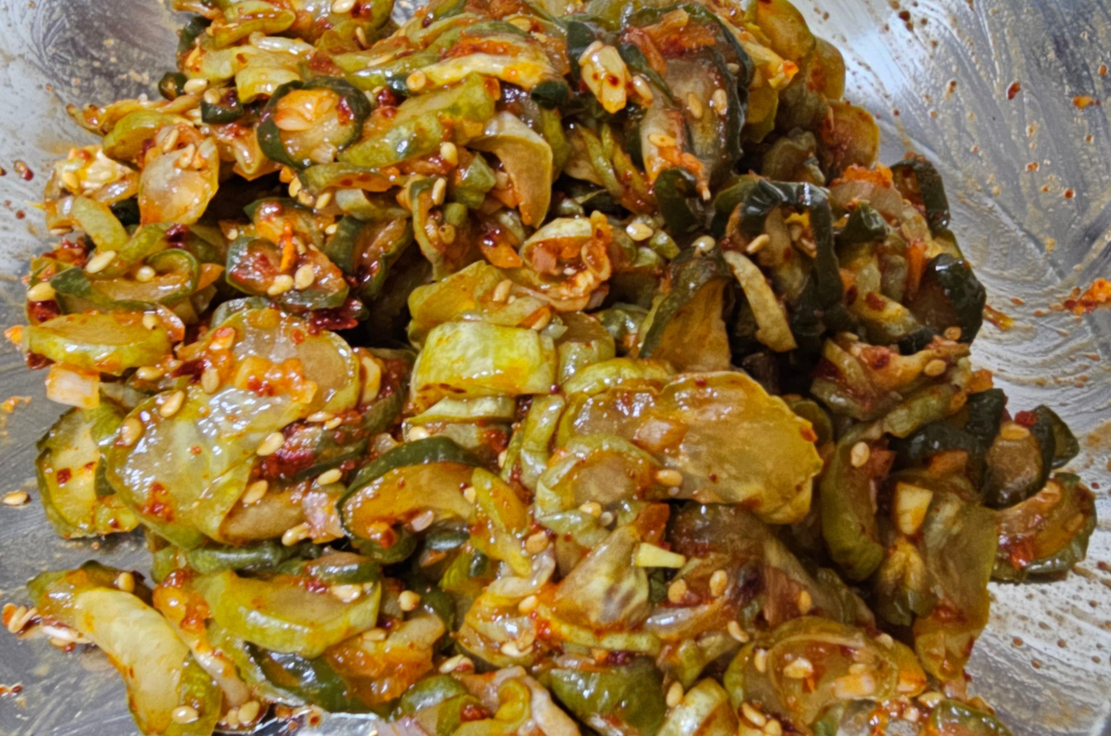 이렇게 완성된 오이지무침은 그냥 밥반찬으로도 훌륭하고, 열무비빔밥이나 냉면에 곁들여 먹으면 정말 잘 어울립니다.