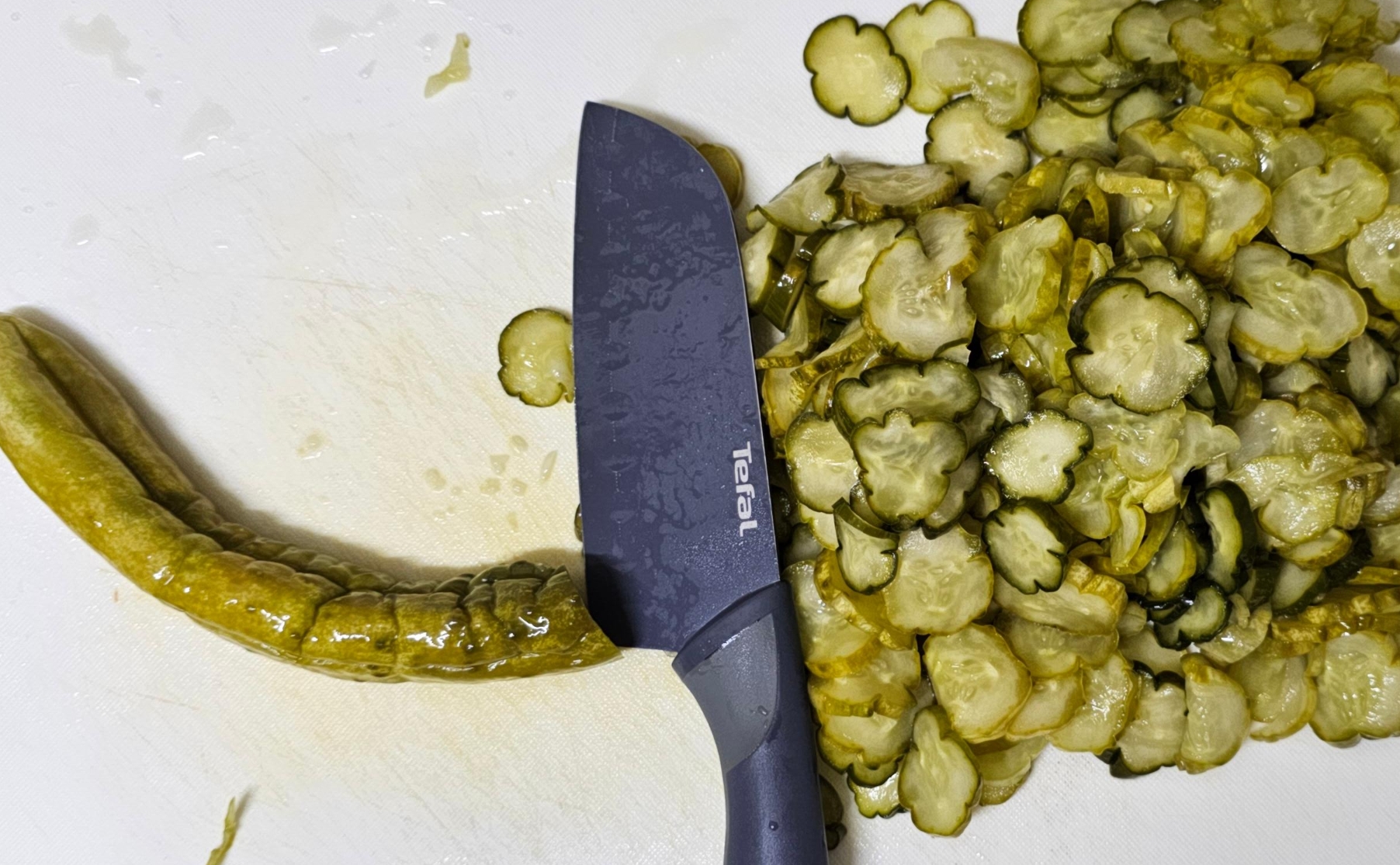 먼저 오이지를 적당히 얇은 두께로 송송 썰어줍니다.