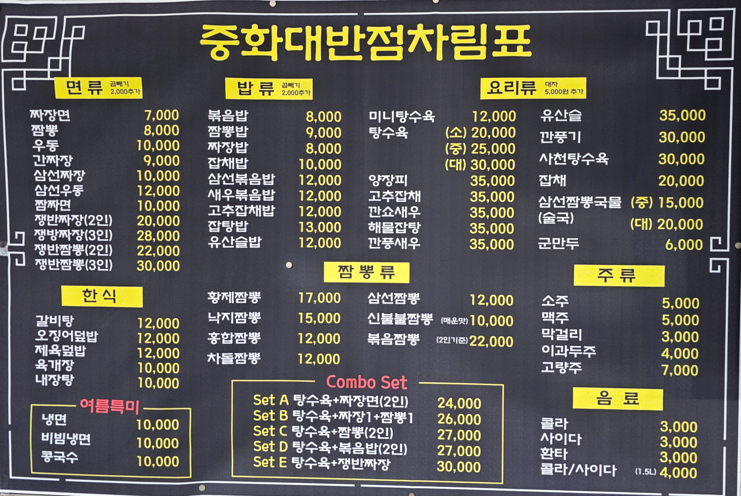 이날은 어른 넷, 아이 셋이 함께였기에 탕수육 대자, 짬뽕 네 그릇, 자장면 곱빼기를 주문했습니다.
